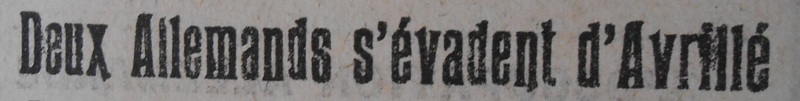 Jeudi 31 août 1916 au soir, deux allemands employés aux travaux agricoles ont prennent la fuite du cantonnement situé à Avrillé. Leurs noms et une description physique sont ainsi élaborés afin de les retrouver.